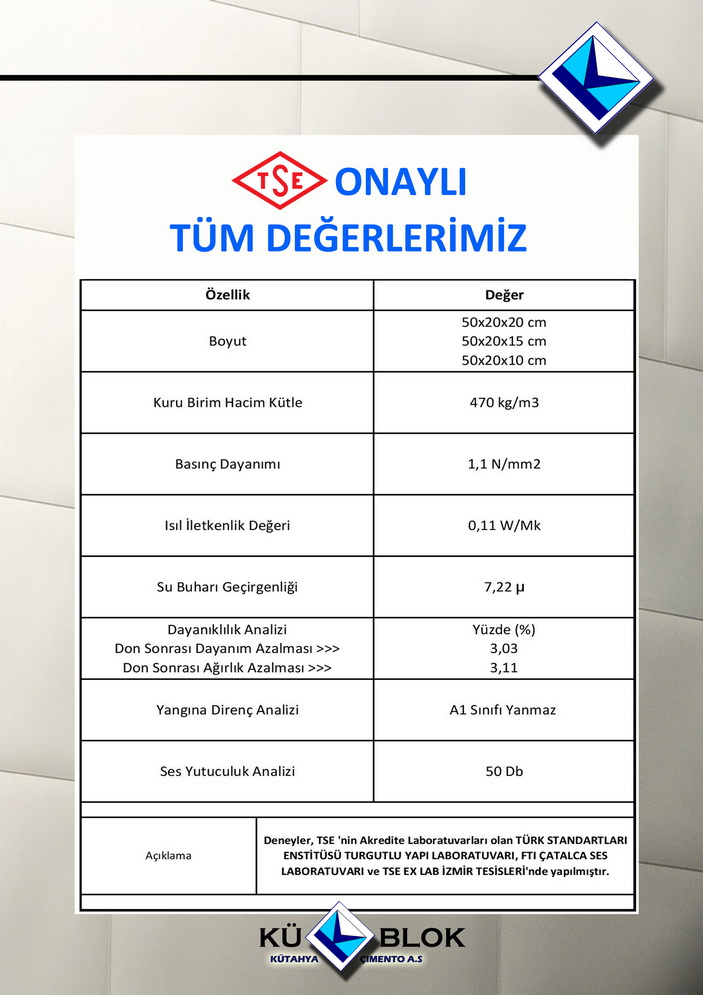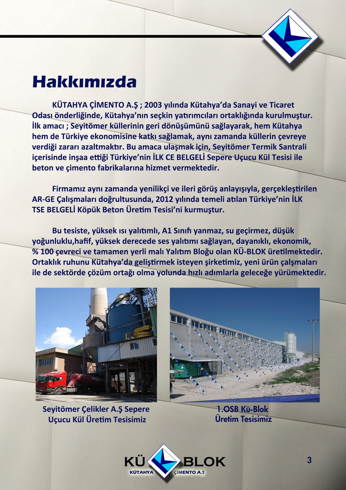 KÜTAHYA ÇİMENTO A.Ş. KÜ-BLOK ÜRÜNÜMÜZ HAKKINDA BİLGİ